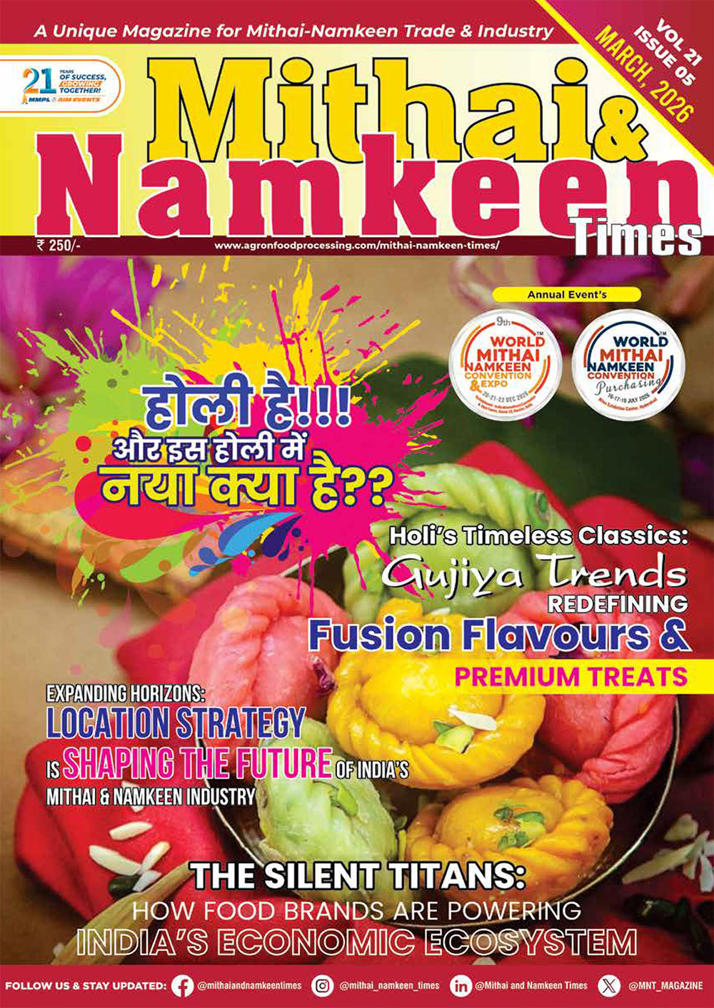 Hence, as there was no whole and sole publication related to the industry, we felt the need to publish “Mithai & Namkeen Times” which will be our monthly magazine. This magazine will help to create more awareness among our readers about mithai & namkeen world. The magazine will cover both national and international news of sweets, mithai, snacks and namkeen categories, various articles, interviews, success stories of existing and startup firms.